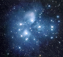 28. Certains objets visibles à l’œil nu furent observés dès l’antiquité, par exemple ci-contre : M45 (Les Pléiades), dont certaines mentions datent de 2000 avants J.C. |